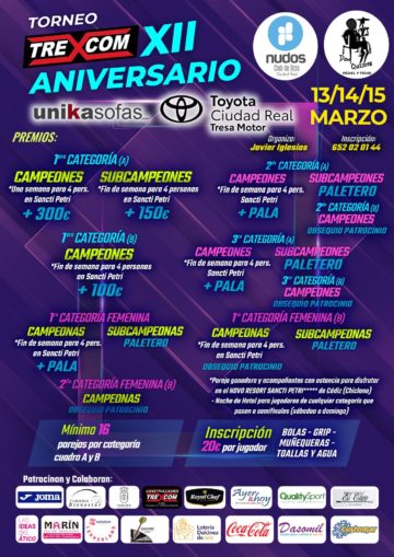 FECHA 13/14/15 MARZO 2026 ‼‼IMPORTANTES PREMIOS VALORADOS EN MAS DE 5.000€‼‼ 20€/persona WELCOME PACK BOLAS – GRIP – MUÑEQUERA – TOALLA Y AGUA ——————————————————————