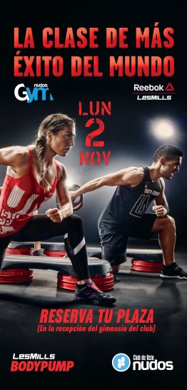 BODYPUMP es la clase original con barra y discos que fortalece y tonifica todo el cuerpo. En esta sesión, de 60 minutos, trabajarás los principales grupos musculares utilizando los mejores ejercicios de la sala de fitness, tales como squats, presses, elevaciones y curls. Buena música, fantásticos instructores y tu selección del peso, te motivarán a conseguir los resultados que buscas ¡y rápido!