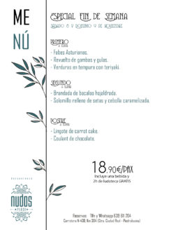 Gastronomía “típica”, un menú especial que no puedes perderte y el sábado 25 a las 22,00h vamos a tener un concierto en directo “DESPACITO Y AL COMPÁS “ (cante, guitarra , cajón, congas y flauta travesera) que nos amenizará la noche con rumbitas, bulerías , sevillanas y con todo lo que haga falta.