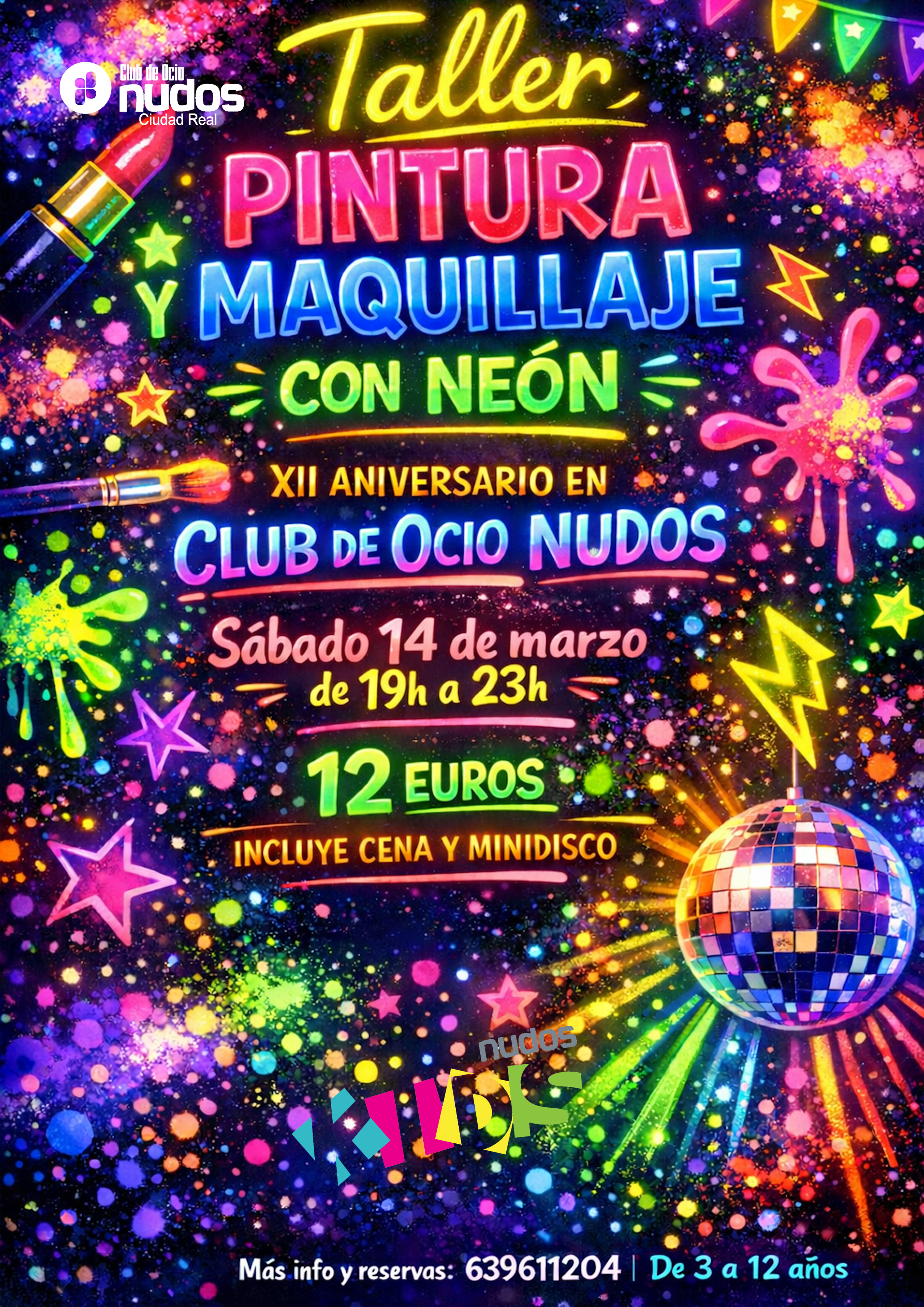 El próximo 14 de Marzo te invitamos a disfrutar de una actividad creativa y divertida en nuestra ludoteca con el taller MAQUILLAJE DE NEÓN!