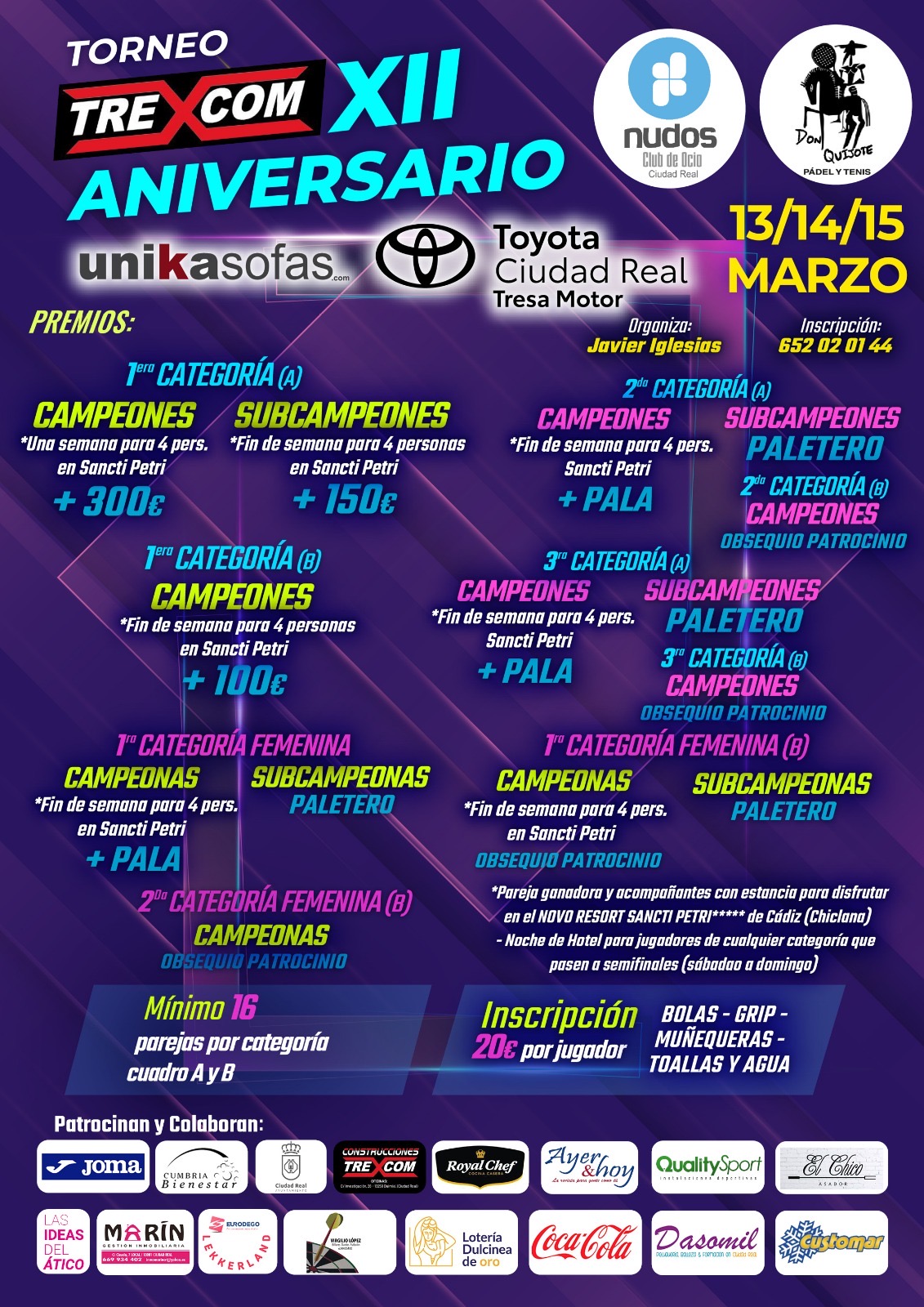 FECHA 13/14/15 MARZO 2026 ‼‼IMPORTANTES PREMIOS VALORADOS EN MAS DE 5.000€‼‼ 20€/persona WELCOME PACK BOLAS – GRIP – MUÑEQUERA – TOALLA Y AGUA ——————————————————————