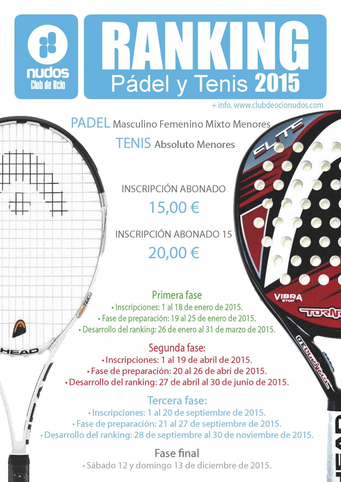 Club de Ocio Nudos le informa de la apertura del plazo de inscripción para la fase 2 del ranking de tenis y pádel hasta el domingo 19 de abril.