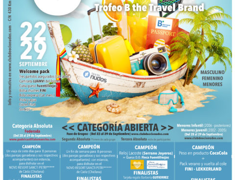 📋 VI OPEN DE PÁDEL TROFEO B the travel brand 🏆 ¡Grandes premios para todas las categorías y un fantástico WELCOME PACK te esperan! Del 22 al 29 de septiembre de 2019 CATEGORÍAS MENORES Todos los inscritos comenzarán el sábado 28 de septiembre a las 17:30 1ª CATEGORÍA Página Oficial FPCLM 2ª y 3ª CATEGORÍAS FEMENINA Y…
