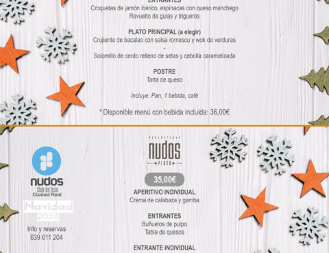Ven a disfrutar a Nudos Plaza de nuestros menús de navidad y año nuevo. Reserva tu mesa en el 926 233090. Te esperamos