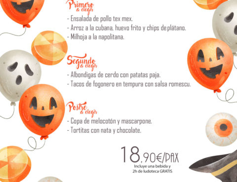 Este sábado 1 y domingo 2 de noviembre, ven a disfrutar de un menú especial pensado para sorprenderte: Primero (a elegir): Ensalada de pollo tex mex Arroz a la cubana con huevo frito y chips de plátano Milhoja a la napolitana Segundo (a elegir): Albóndigas de cerdo con patatas paja Tacos de fogonero en tempura…