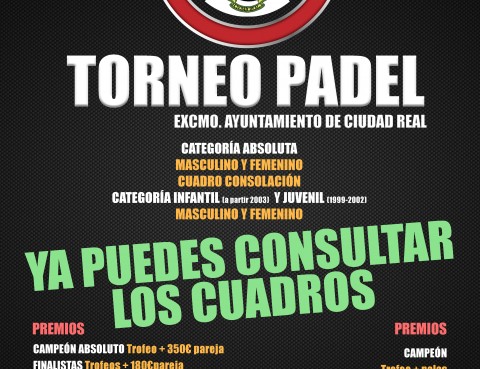 YA PUEDES CONSULTAR LOS CUADROS DEL I TORNEO DE PÁDEL EXCMO. AYUNTAMIENTO DE CIUDAD REAL. -Los partidos del cuadro de consolación se jugarán el mismo día que la ronda correspondiente del cuadro final. El lunes se pondrá el horario correspondiente a dichos encuentros. -Todos los inscritos a las categoría infantil (tanto masculina como femenina) están citados…